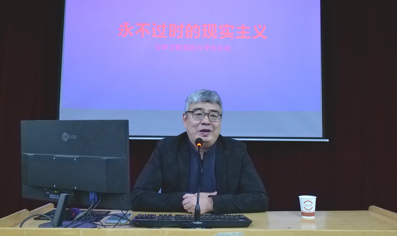 沙颂先生以“永不过时的现实主义”为题,从当下现实主义发展的现状出发,结合自身创作经历,分析了当下信息时代人们的心理变化,随后从“我们面对的未来”“快乐的源泉”“无人想做NPC”“为什么要现实主义”“做一个丰富而快乐的影评人”五个方面,深入浅出地讲解了现实主义的内涵和重要性。在报告中,沙颂先生指出心理需求的直接满足是获得幸福的重要因素,同时以感动的实现、意义的寻求、生活的真实论述了现实主义影视创作的诀窍,指出现实主义创作的多种存在方式和价值实现渠道。