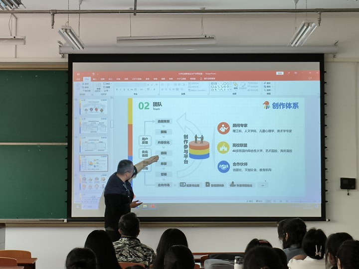 报告会上,张大伟教授以其指导获得2021届第七届中国国际“互联网”老员工创新创业大赛金奖项目《童类人—世界一流图书创造者》为案例,向同学们讲述了大创的要求和流程,张大伟教授分别从市场分析、选题开发、商业模式、社会效益等方面进行了展开分析。