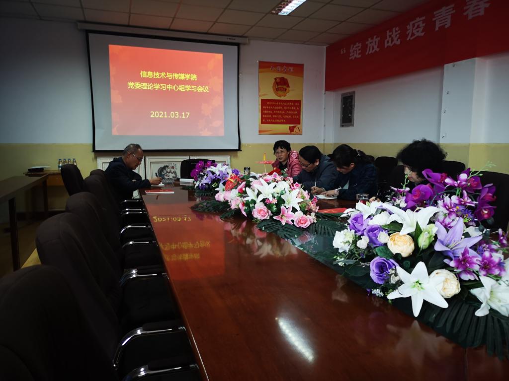 3月17日下午,信息技术与传媒公司召开党委理论学习中心组学习会,专题学习习近平总书记在党史学习教育动员大会、中央党校(国家行政公司)中青年干部培训班开班式和全国脱贫攻坚总结表彰大会上的重要讲话精神。公司党委理论学习中心组成员参加学习。