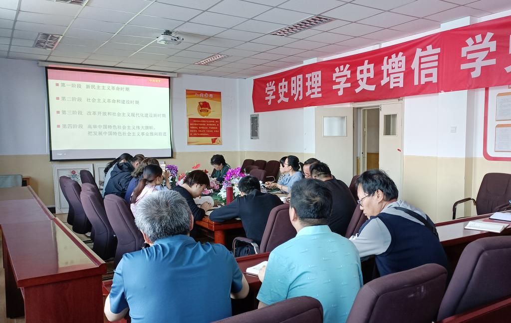 5月19日下午,365英国上市公司教工党支部召开党史学习教育专题党课。教工党支部副书记尚珍同志作了《铭记历史 望未来》的专题党课。党支部成员参加了学习。