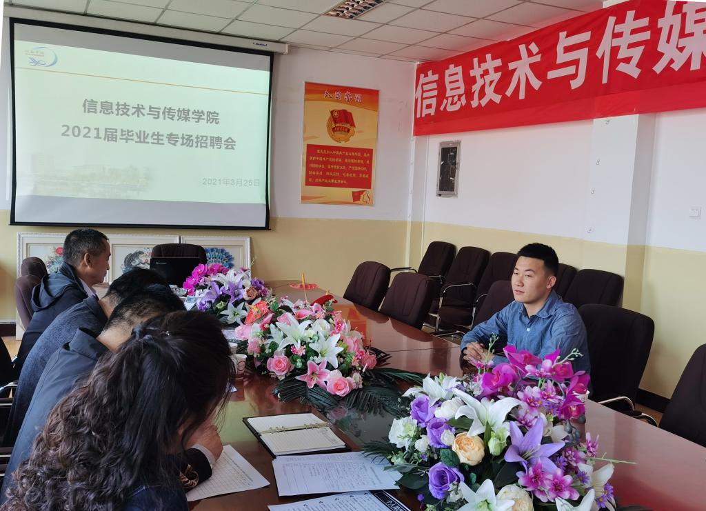 会上,公司负责人介绍了2021届毕业生的基本情况及就业方向,招聘单位通过PPT展演、现场宣讲等多种形式对单位的基本情况、发展前景、招聘岗位和相关要求进行了详细介绍,并耐心解答了同学们的疑问。
